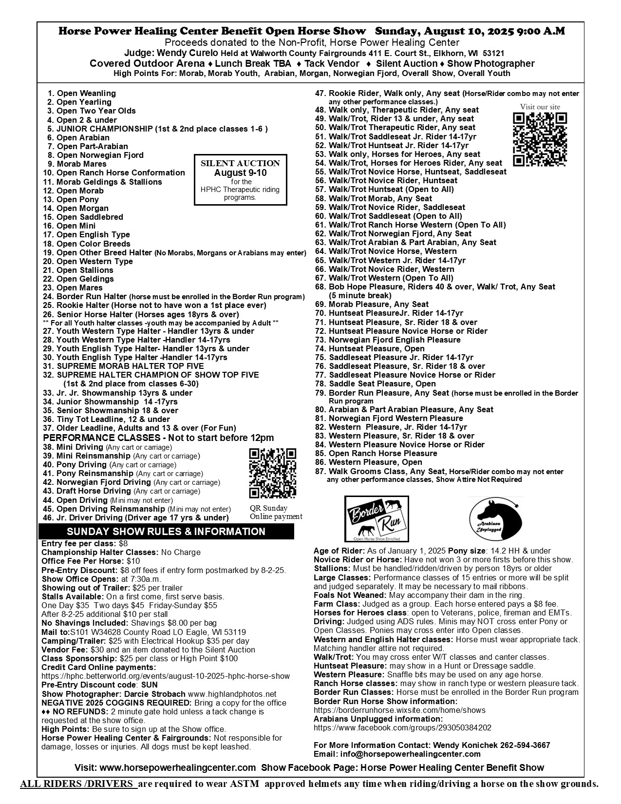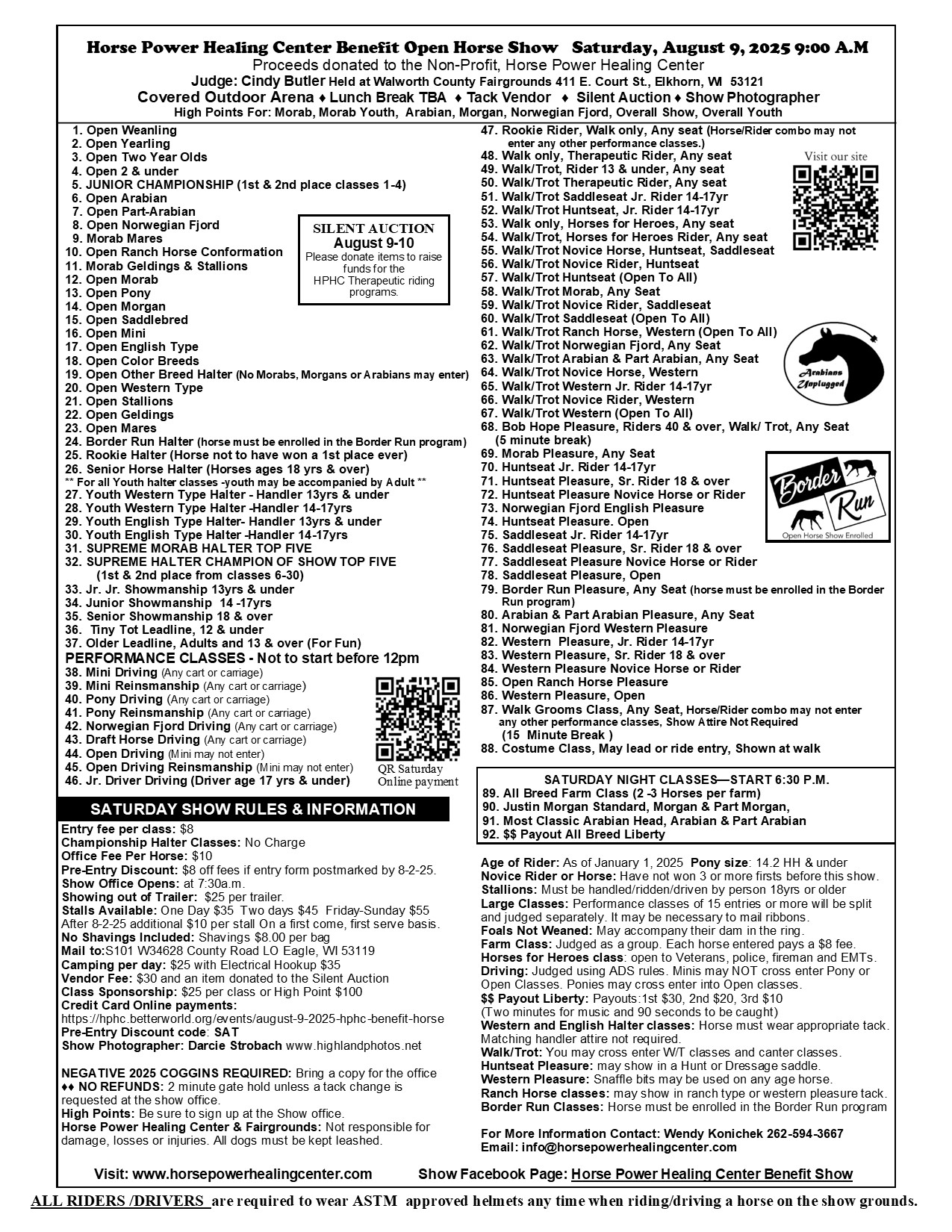 Covered and Outdoor arenas. Online Credit Card payments: We are part of the Border Run Open Show Series We are part of the Arabians Unplugged Show Series Show Photographer- Darcie Strobach Highland Photography